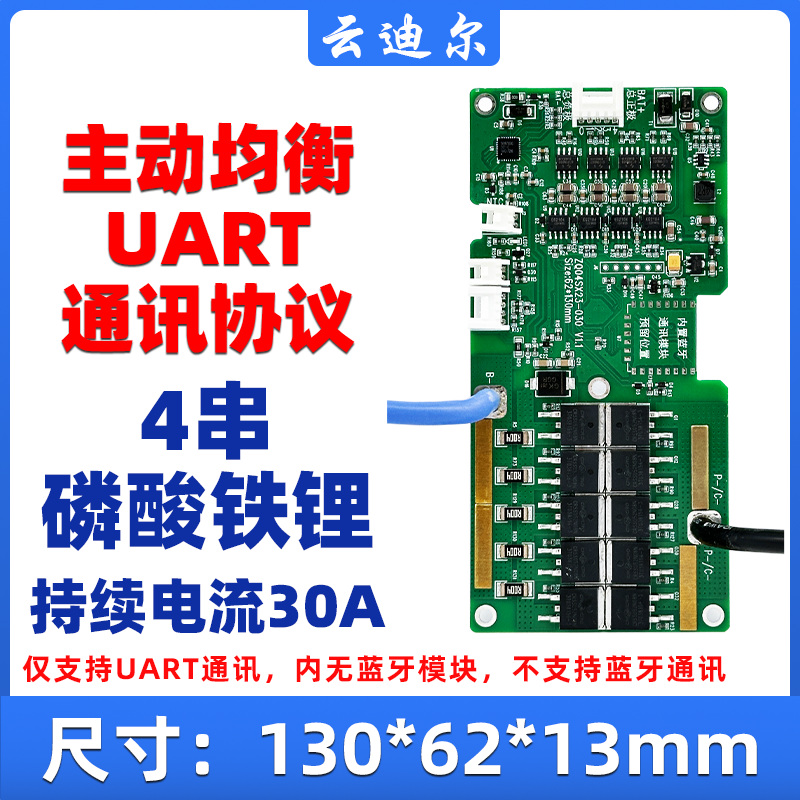固定串数4串磷酸铁锂负极同口仅UART通讯持续电流30A主动均衡0.4A
