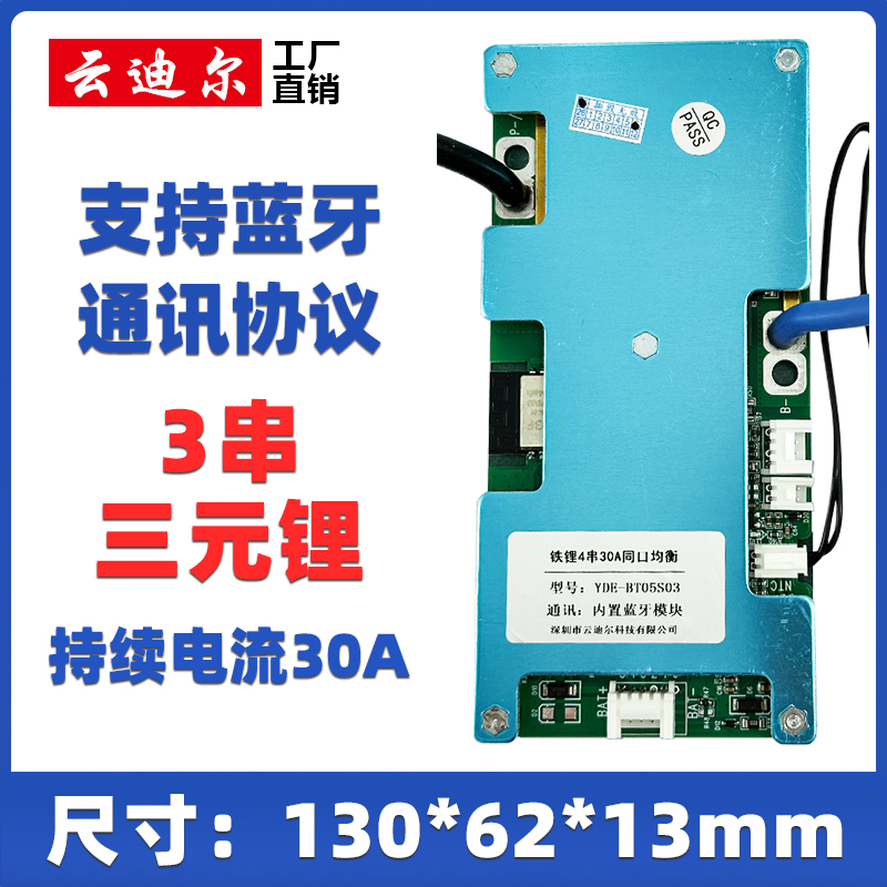 固定串数3串三元锂负极同口内置蓝牙持续电流30A被动均衡