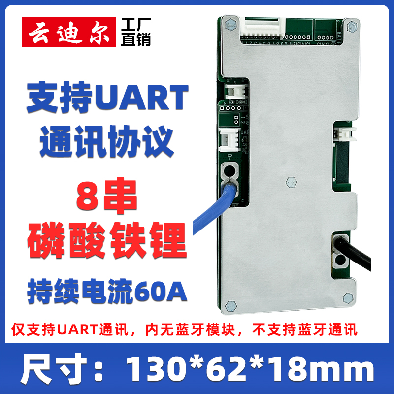 固定串数8串磷酸铁锂负极同口仅UART通讯持续电流50A被动均衡