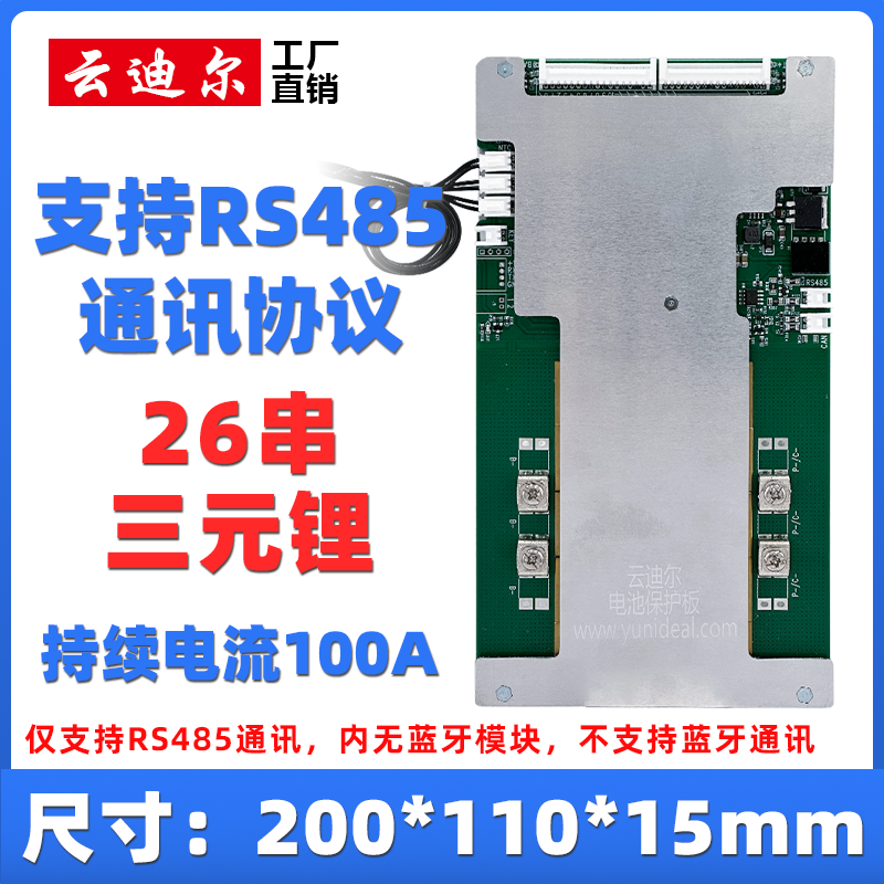 固定串数26串三元锂负极同口隔离RS485通讯持续电流100A被动均衡