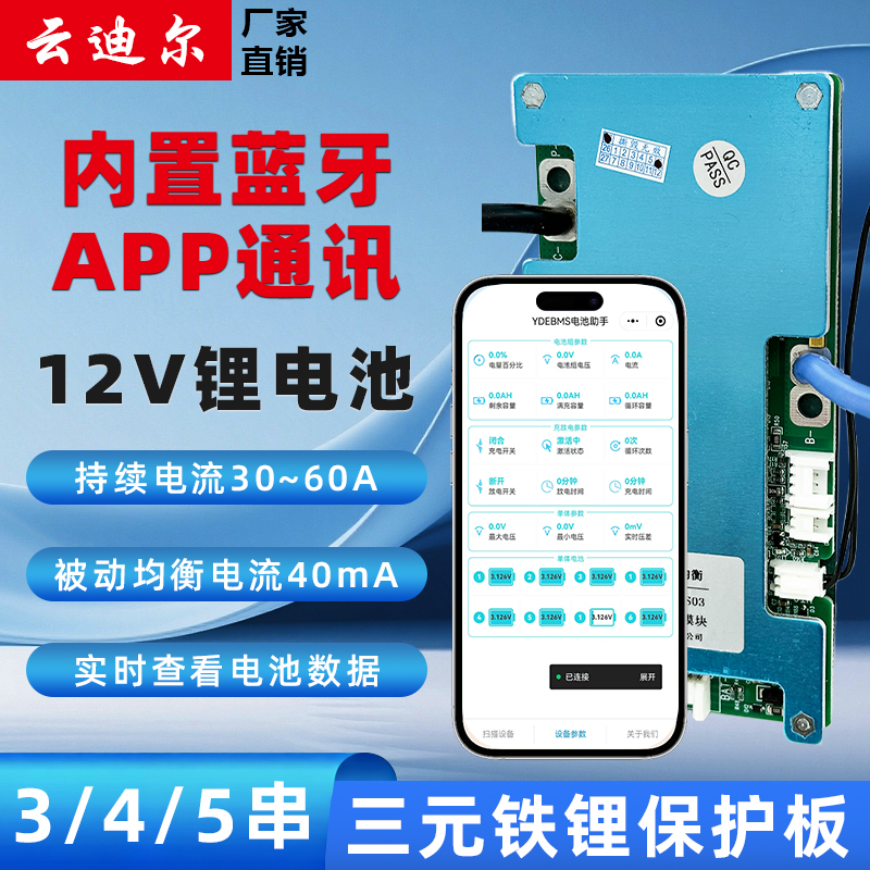 12V固定串数3/4/5串三元锂磷酸铁锂持续电流10/20/30/40/50A(RS485蓝牙CAN)