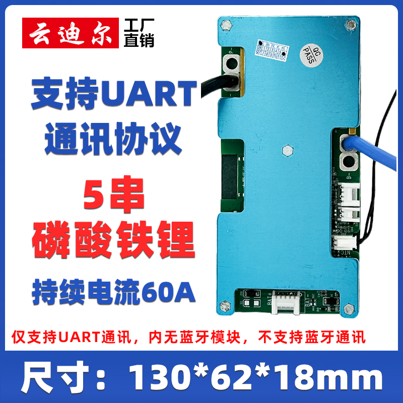 固定串数5串磷酸铁锂负极同口仅UART通讯持续电流60A被动均衡