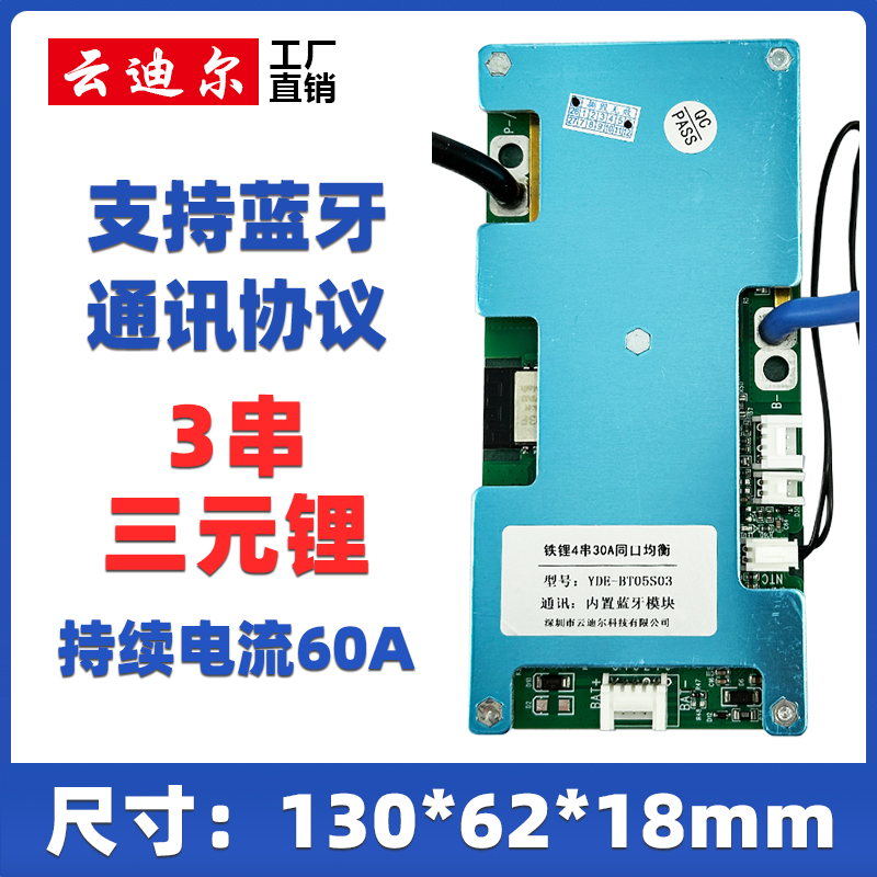 固定串数3串三元锂负极同口内置蓝牙持续电流60A被动均衡
