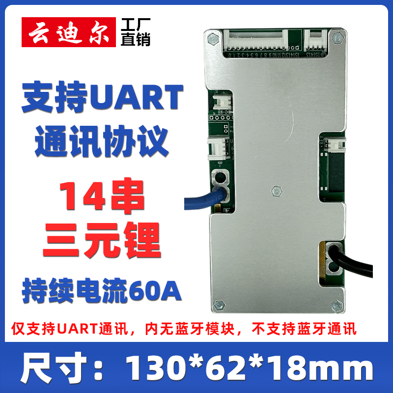 自动识别6-16串三元锂负极同口仅UART通讯持续电流50A被动均衡